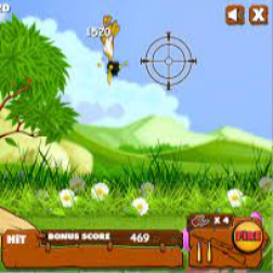 In this game, you will experience the feeling of a hunter who is finding and hunting ducks. There are various wild ducks, and they fly at different speeds to different destinations. Your mission is to aim and eliminate all ducks; remember that you have three bullets to hit the ducks, don't let them fly away, or you will lose a life.